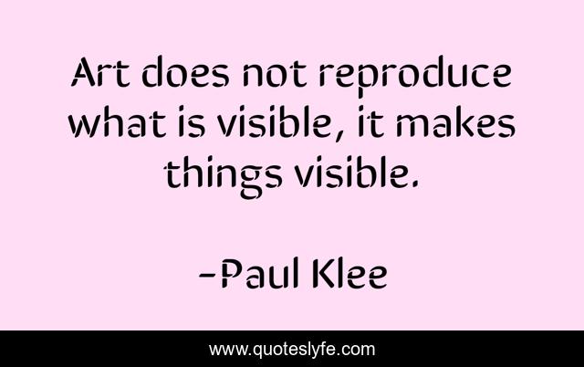 This page presents the quote "Art does not reproduce what is visible, it makes things visible.". Author of this quote is Paul Klee. .