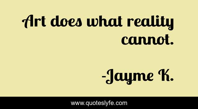 "Jayme K. Quotes." Quoteslyfe.com, 2025. Sat. 06 Dec. 2025. <https://www.quoteslyfe.com/quote/Art-does-what-reality-cannot-243854>.