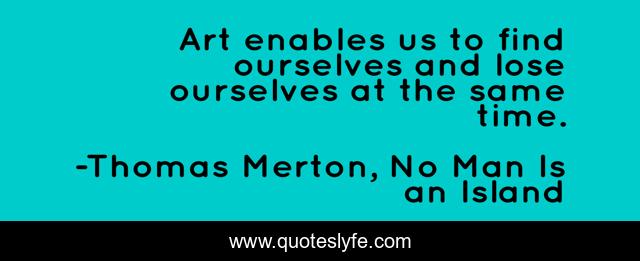 This page presents the quote "Art enables us to find ourselves and lose ourselves at the same time.". Author of this quote is Thomas Merton, No Man Is an Island. .
