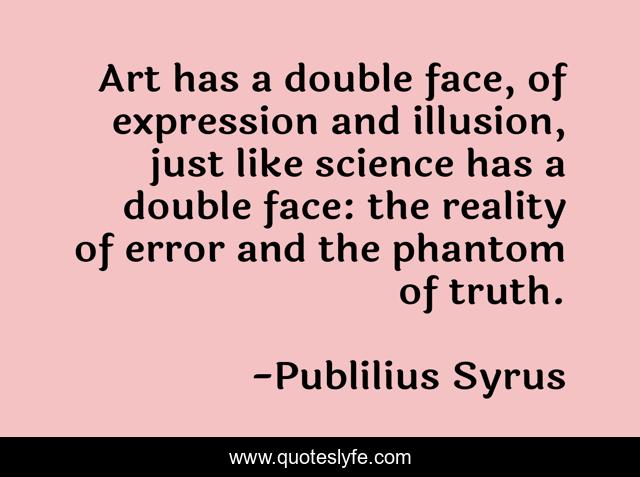 This page presents the quote "Art has a double face, of expression and illusion, just like science has a double face: the reality of error and the phantom of truth.". Author of this quote is Publilius Syrus. This quote is about art, truth, reality,.