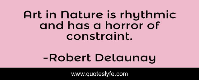 This page presents the quote "Art in Nature is rhythmic and has a horror of constraint.". Author of this quote is Robert Delaunay. This quote is about horror, nature, constraint,.