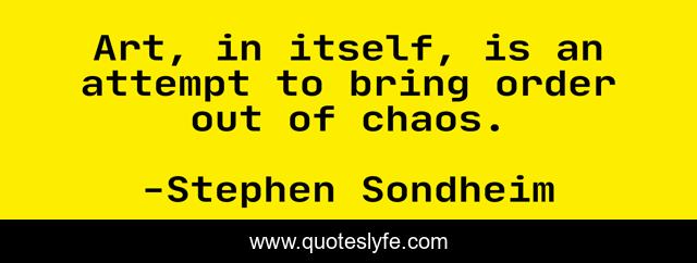 This page presents the quote "Art, in itself, is an attempt to bring order out of chaos.". Author of this quote is Stephen Sondheim. .