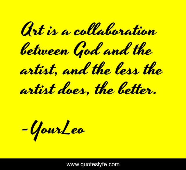 This page presents the quote "Art is a collaboration between God and the artist, and the less the artist does, the better.". Author of this quote is YourLeo. This quote is about god, art, artist,.