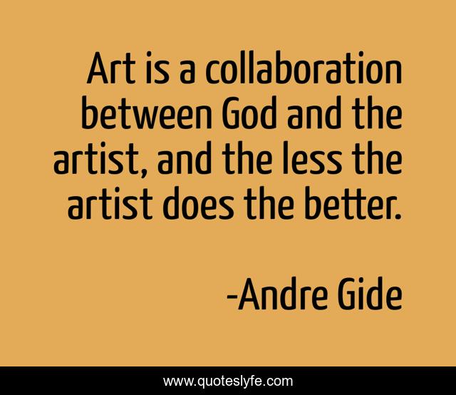 This page presents the quote "Art is a collaboration between God and the artist, and the less the artist does the better.". Author of this quote is Andre Gide. This quote is about god, collaboration, artist,.