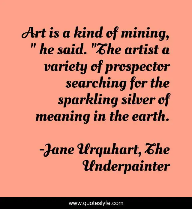 "Jane Urquhart, The Underpainter Quotes." Quoteslyfe.com, 2025. Sat. 06 Dec. 2025. <https://www.quoteslyfe.com/quote/Art-is-a-kind-of-mining-he-65578>.