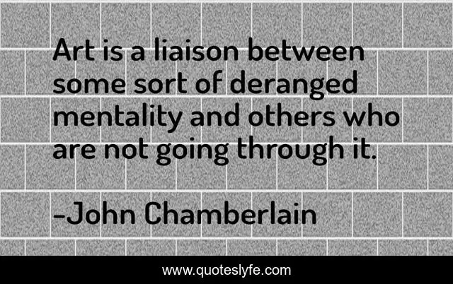 This page presents the quote "Art is a liaison between some sort of deranged mentality and others who are not going through it.". Author of this quote is John Chamberlain. This quote is about going, through, between,.