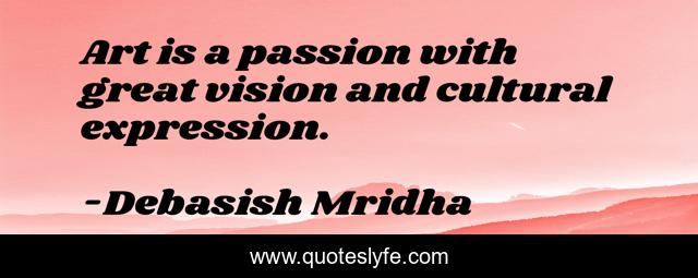 This page presents the quote "Art is a passion with great vision and cultural expression.". Author of this quote is Debasish Mridha. This quote is about life, love, knowledge, inspirational, intelligence, philosophy, wisdom, quotes, affection,.