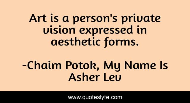This page presents the quote "Art is a person's private vision expressed in aesthetic forms.". Author of this quote is Chaim Potok, My Name Is Asher Lev. .