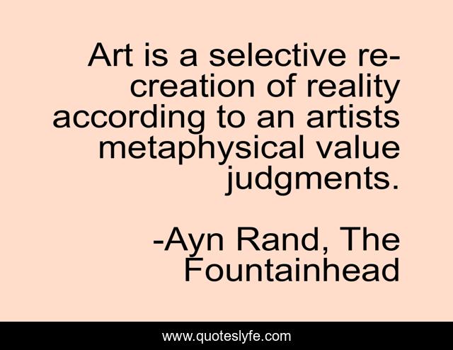 "Ayn Rand, The Fountainhead Quotes." Quoteslyfe.com, 2025. Fri. 05 Dec. 2025. <https://www.quoteslyfe.com/quote/Art-is-a-selective-re-creation-of-65380>.