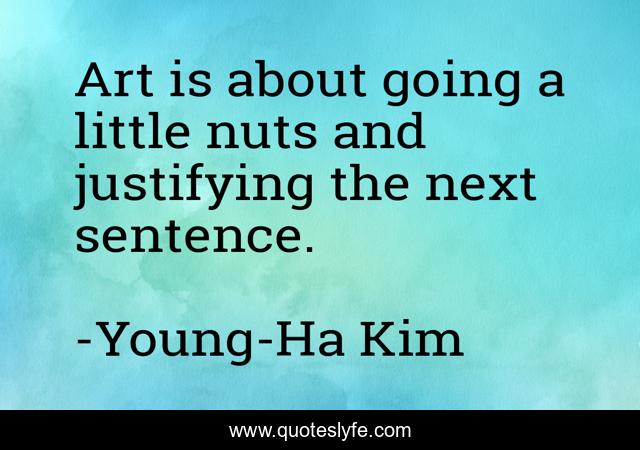 This page presents the quote "Art is about going a little nuts and justifying the next sentence.". Author of this quote is Young-Ha Kim. This quote is about art, creativity, inspiration,.