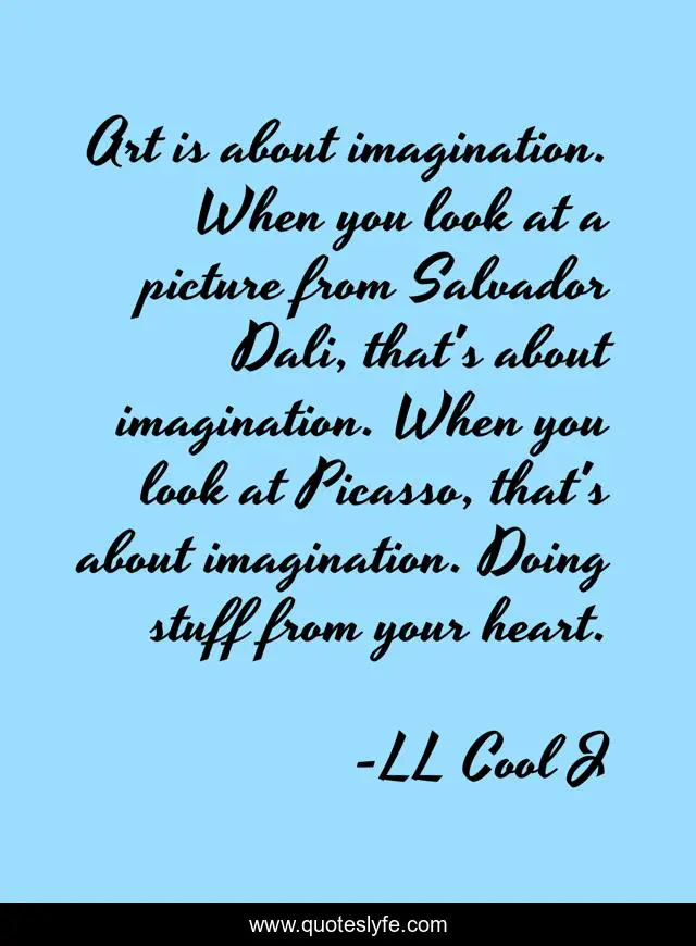 This page presents the quote "Art is about imagination. When you look at a picture from Salvador Dali, that's about imagination. When you look at Picasso, that's about imagination. Doing stuff from your heart.". Author of this quote is LL Cool J. This quote is about heart, art, picture,.