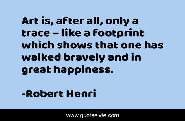 This page presents the quote "Art is, after all, only a trace – like a footprint which shows that one has walked bravely and in great happiness.". Author of this quote is Robert Henri. .