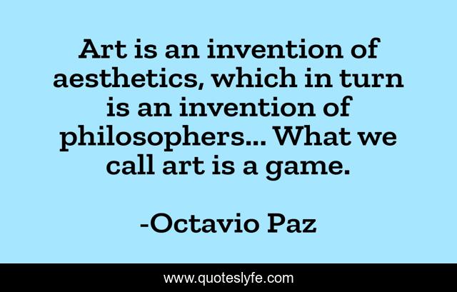 "Octavio Paz Quotes." Quoteslyfe.com, 2025. Mon. 08 Dec. 2025. <https://www.quoteslyfe.com/quote/Art-is-an-invention-of-aesthetics-which-318214>.