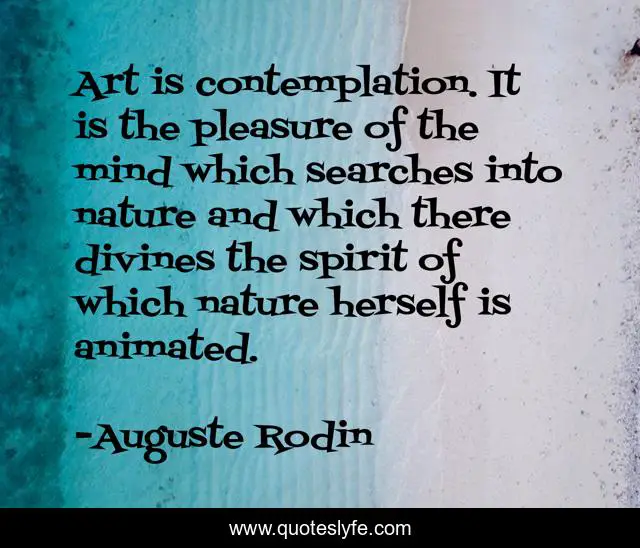 This page presents the quote "Art is contemplation. It is the pleasure of the mind which searches into nature and which there divines the spirit of which nature herself is animated.". Author of this quote is Auguste Rodin. This quote is about art, mind, pleasure,.