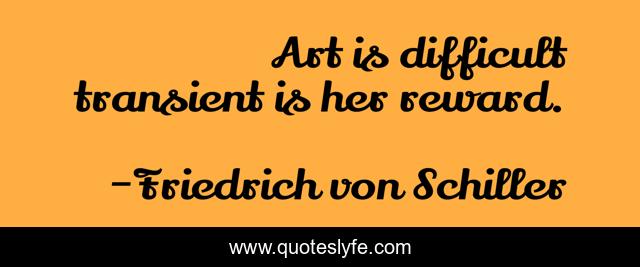 "Friedrich von Schiller Quotes." Quoteslyfe.com, 2025. Sun. 07 Dec. 2025. <https://www.quoteslyfe.com/quote/Art-is-difficult-transient-is-her-reward-260526>.