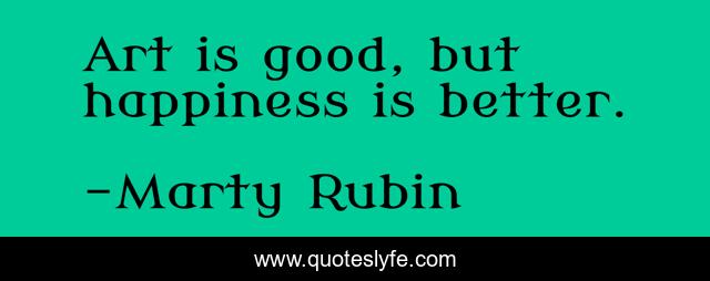 This page presents the quote "Art is good, but happiness is better.". Author of this quote is Marty Rubin. This quote is about art, happiness,.