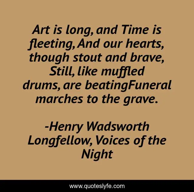 Art is long, and Time is fleeting, And our hearts, though stout and brave, Still, like muffled drums, are beatingFuneral marches to the grave.