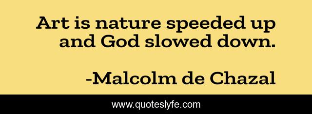 "Malcolm de Chazal Quotes." Quoteslyfe.com, 2025. Mon. 08 Dec. 2025. <https://www.quoteslyfe.com/quote/Art-is-nature-speeded-up-and-God-292572>.