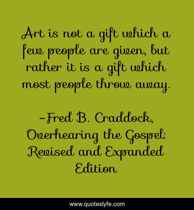 "Fred B. Craddock, Overhearing the Gospel: Revised and Expanded Edition Quotes." Quoteslyfe.com, 2025. Fri. 05 Dec. 2025. <https://www.quoteslyfe.com/quote/Art-is-not-a-gift-which-a-66274>.