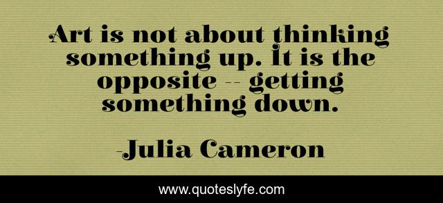 This page presents the quote "Art is not about thinking something up. It is the opposite -- getting something down.". Author of this quote is Julia Cameron. .