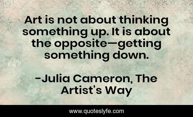 This page presents the quote "Art is not about thinking something up. It is about the opposite—getting something down.". Author of this quote is Julia Cameron, The Artist's Way. This quote is about artists-life, art, creativity, creative-flow, writing, on-writing,.