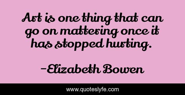 This page presents the quote "Art is one thing that can go on mattering once it has stopped hurting.". Author of this quote is Elizabeth Bowen. This quote is about go, one thing, once,.