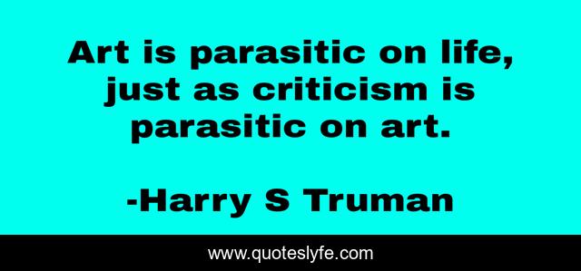 This page presents the quote "Art is parasitic on life, just as criticism is parasitic on art.". Author of this quote is Harry S Truman. This quote is about criticism, life, just,.