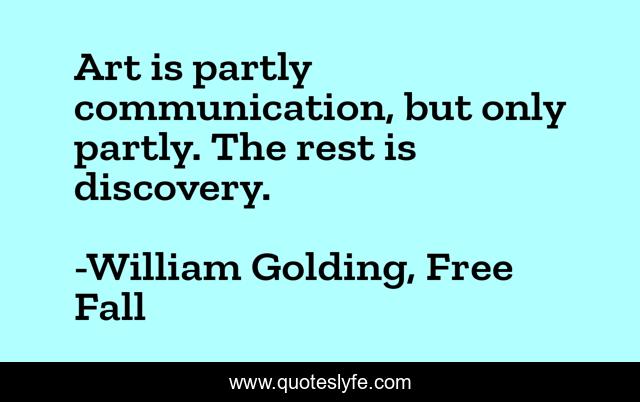 This page presents the quote "Art is partly communication, but only partly. The rest is discovery.". Author of this quote is William Golding, Free Fall. This quote is about communication, art, discovery,.
