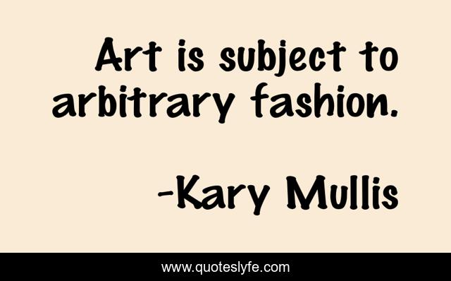 This page presents the quote "Art is subject to arbitrary fashion.". Author of this quote is Kary Mullis. This quote is about arbitrary, fashion, subject,.