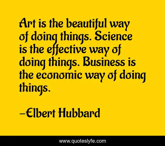 This page presents the quote "Art is the beautiful way of doing things. Science is the effective way of doing things. Business is the economic way of doing things.". Author of this quote is Elbert Hubbard. This quote is about art, effective, beauty, science, economics, business,.
