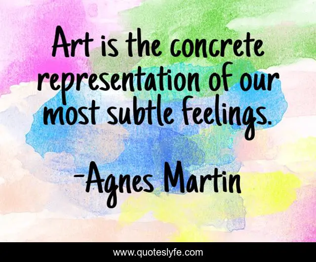 This page presents the quote "Art is the concrete representation of our most subtle feelings.". Author of this quote is Agnes Martin. This quote is about concrete, feelings,.
