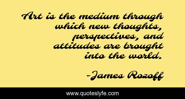 This page presents the quote "Art is the medium through which new thoughts, perspectives, and attitudes are brought into the world.". Author of this quote is James Rozoff. This quote is about new, evolution, literature, art, progress,.