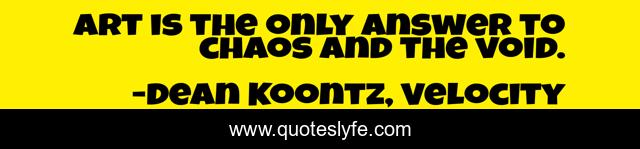 This page presents the quote "Art is the only answer to chaos and the void.". Author of this quote is Dean Koontz, Velocity. This quote is about art, void, chaos, koontz, answer, velocity,.