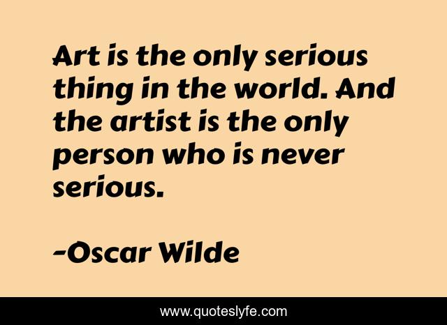 This page presents the quote "Art is the only serious thing in the world. And the artist is the only person who is never serious.". Author of this quote is Oscar Wilde. .