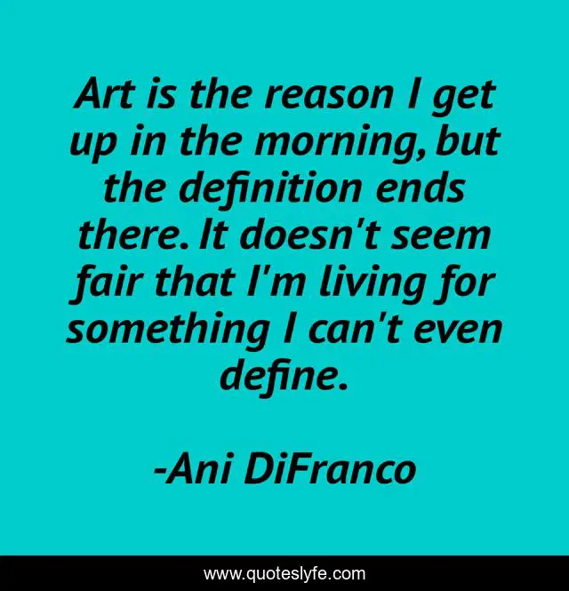 This page presents the quote "Art is the reason I get up in the morning, but the definition ends there. It doesn't seem fair that I'm living for something I can't even define.". Author of this quote is Ani DiFranco. This quote is about life, art,.