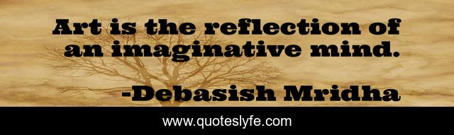 This page presents the quote "Art is the reflection of an imaginative mind.". Author of this quote is Debasish Mridha. This quote is about art, art-is-a-reflection, philosophy, debasish-mridha, quotes, inspirational, enthusiasm, debasish-mridha-m-d, imaginative-mind,.