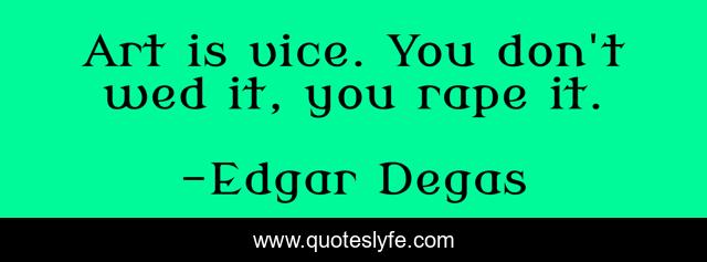 This page presents the quote "Art is vice. You don't wed it, you rape it.". Author of this quote is Edgar Degas. .