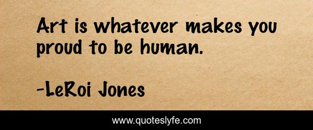 This page presents the quote "Art is whatever makes you proud to be human.". Author of this quote is LeRoi Jones. .
