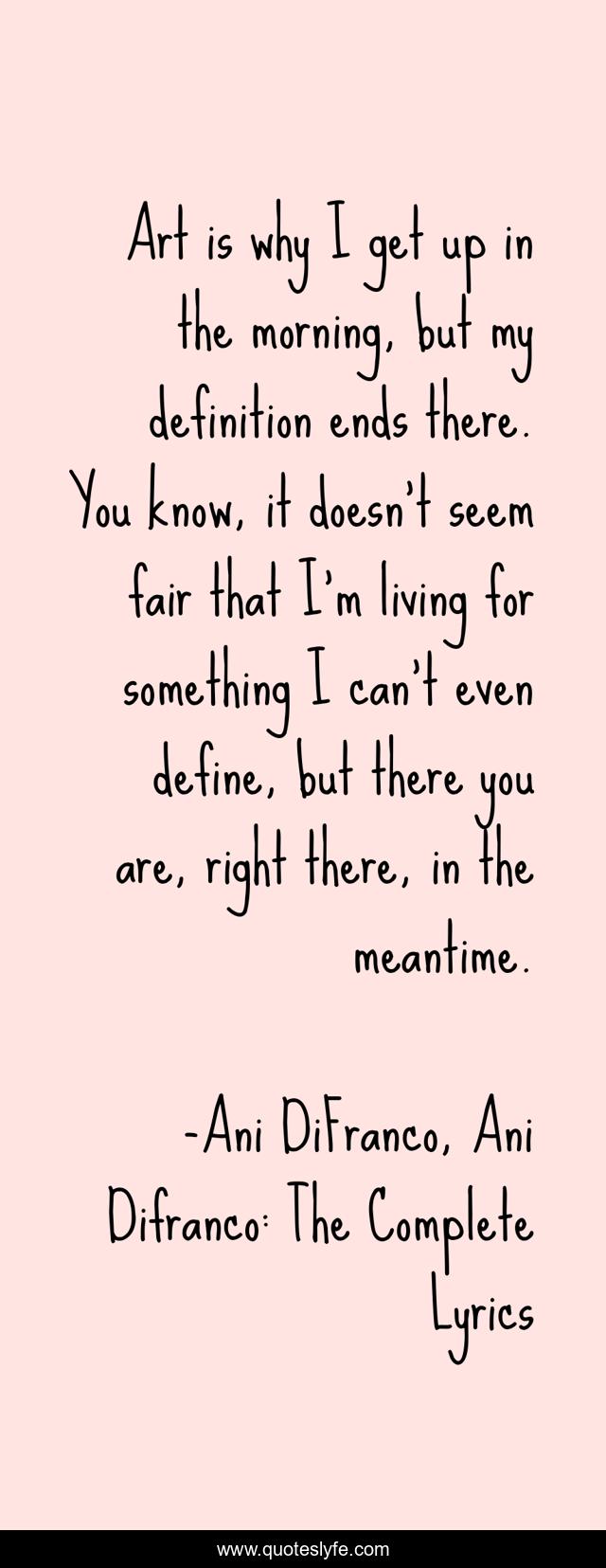 "Ani DiFranco, Ani Difranco: The Complete Lyrics Quotes." Quoteslyfe.com, 2025. Fri. 05 Dec. 2025. <https://www.quoteslyfe.com/quote/Art-is-why-I-get-up-in-65753>.