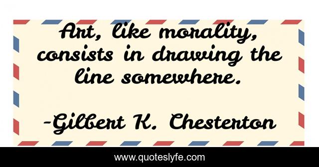 This page presents the quote "Art, like morality, consists in drawing the line somewhere.". Author of this quote is Gilbert K. Chesterton. This quote is about somewhere, drawing, morality,.