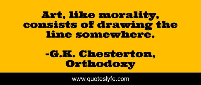 This page presents the quote "Art, like morality, consists of drawing the line somewhere.". Author of this quote is G.K. Chesterton, Orthodoxy. This quote is about art, morality,.