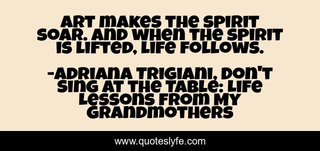 "Adriana Trigiani, Don't Sing at the Table: Life Lessons from My Grandmothers Quotes." Quoteslyfe.com, 2025. Mon. 08 Dec. 2025. <https://www.quoteslyfe.com/quote/Art-makes-the-spirit-soar-And-when-65771>.
