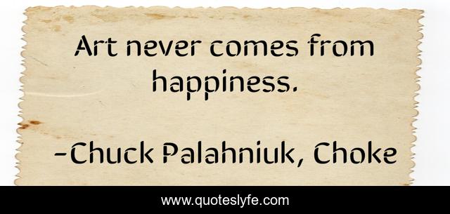 This page presents the quote "Art never comes from happiness.". Author of this quote is Chuck Palahniuk, Choke. This quote is about creation, art,.
