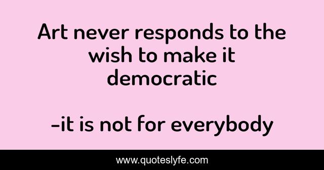 This page presents the quote "Art never responds to the wish to make it democratic". Author of this quote is it is not for everybody. .