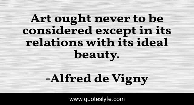 This page presents the quote "Art ought never to be considered except in its relations with its ideal beauty.". Author of this quote is Alfred de Vigny. This quote is about ideal, art,.