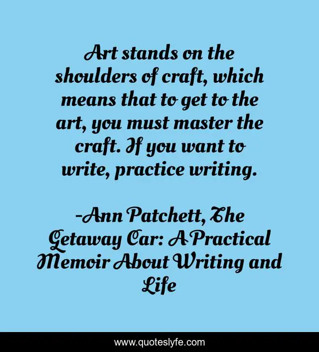 "Ann Patchett, The Getaway Car: A Practical Memoir About Writing and Life Quotes." Quoteslyfe.com, 2025. Sat. 06 Dec. 2025. <https://www.quoteslyfe.com/quote/Art-stands-on-the-shoulders-of-craft-28192>.