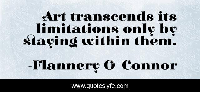 "Flannery O'Connor Quotes." Quoteslyfe.com, 2025. Fri. 05 Dec. 2025. <https://www.quoteslyfe.com/quote/Art-transcends-its-limitations-only-by-staying-65540>.