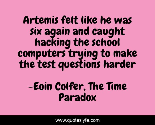 This page presents the quote "Artemis felt like he was six again and caught hacking the school computers trying to make the test questions harder". Author of this quote is Eoin Colfer, The Time Paradox. .