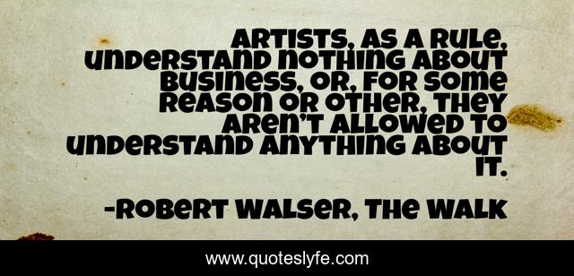 This page presents the quote "Artists, as a rule, understand nothing about business, or, for some reason or other, they aren’t allowed to understand anything about it.". Author of this quote is Robert Walser, The Walk. This quote is about money, art, business, artists,.