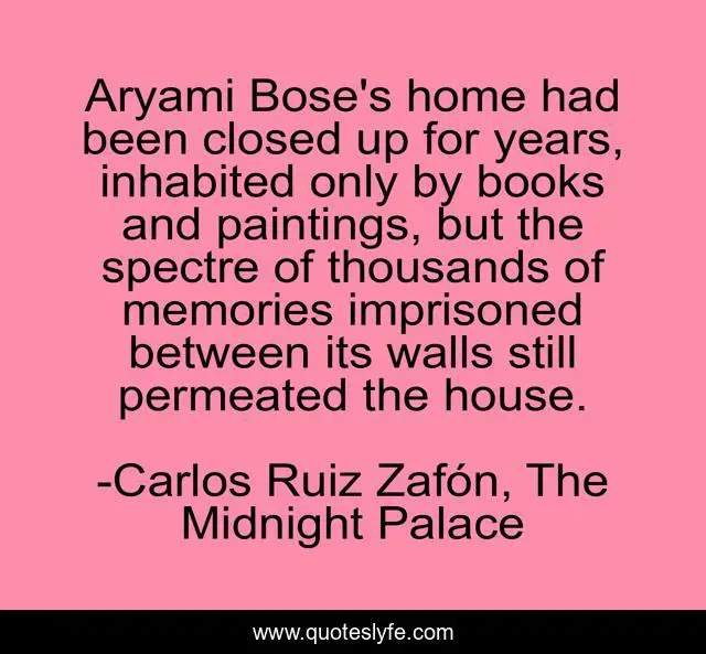 "Carlos Ruiz Zafón, The Midnight Palace Quotes." Quoteslyfe.com, 2025. Sat. 06 Dec. 2025. <https://www.quoteslyfe.com/quote/Aryami-Bose-s-home-had-been-closed-43645>.